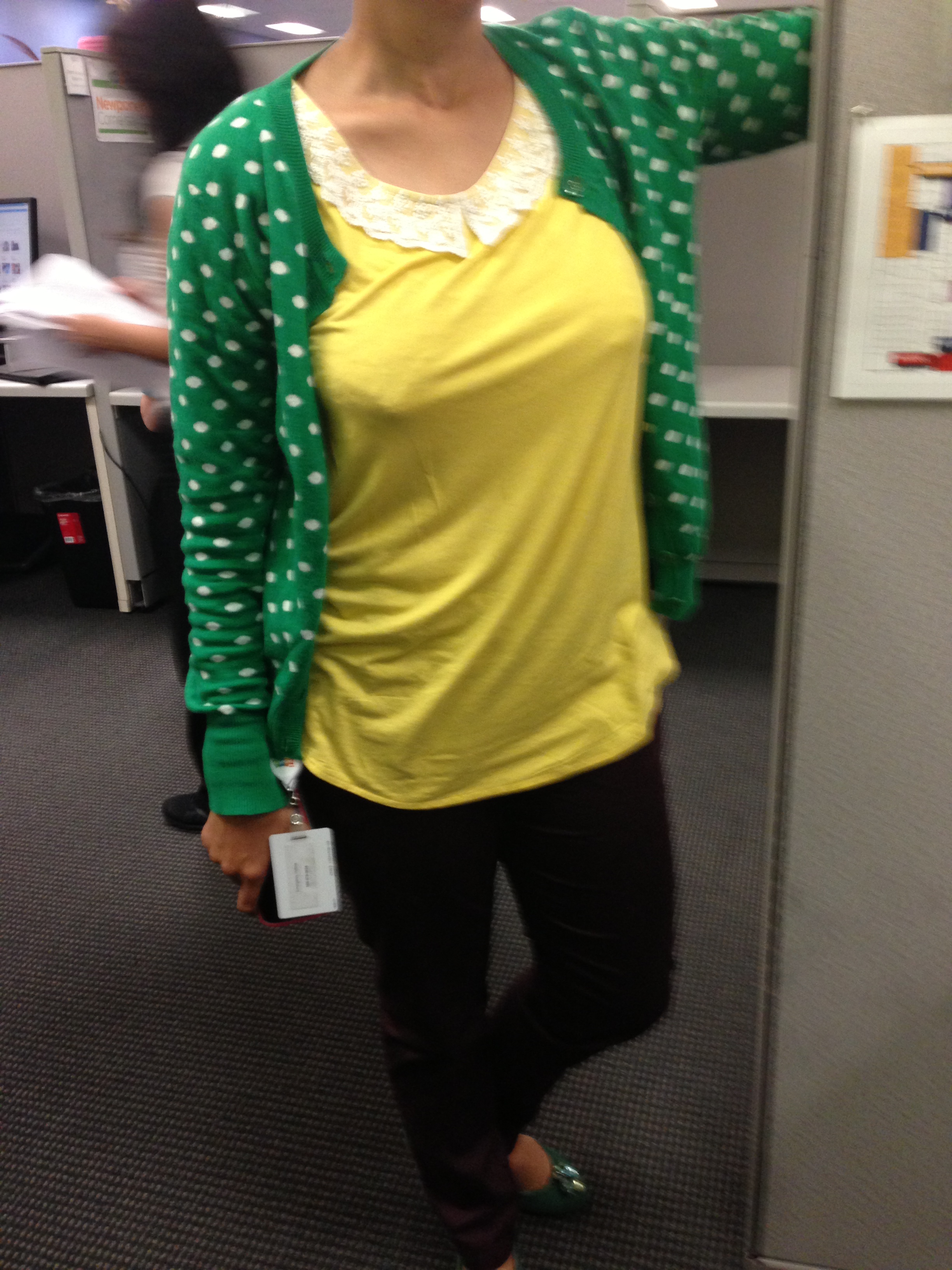 This is my work friend, Mansi. Mansi’s from India and inherently knows how to dress herself in the most colorful of outfits. Me, not so much; I’ve mastered the art of neutrals. I think it’s time to step it up a bit. Granted, I don’t care to look like a kaleidoscope, but my challenge to myself is to wear color on color. I think I may start with a scarf that’s a different color than my pants or shirt. Whoa…! I know.