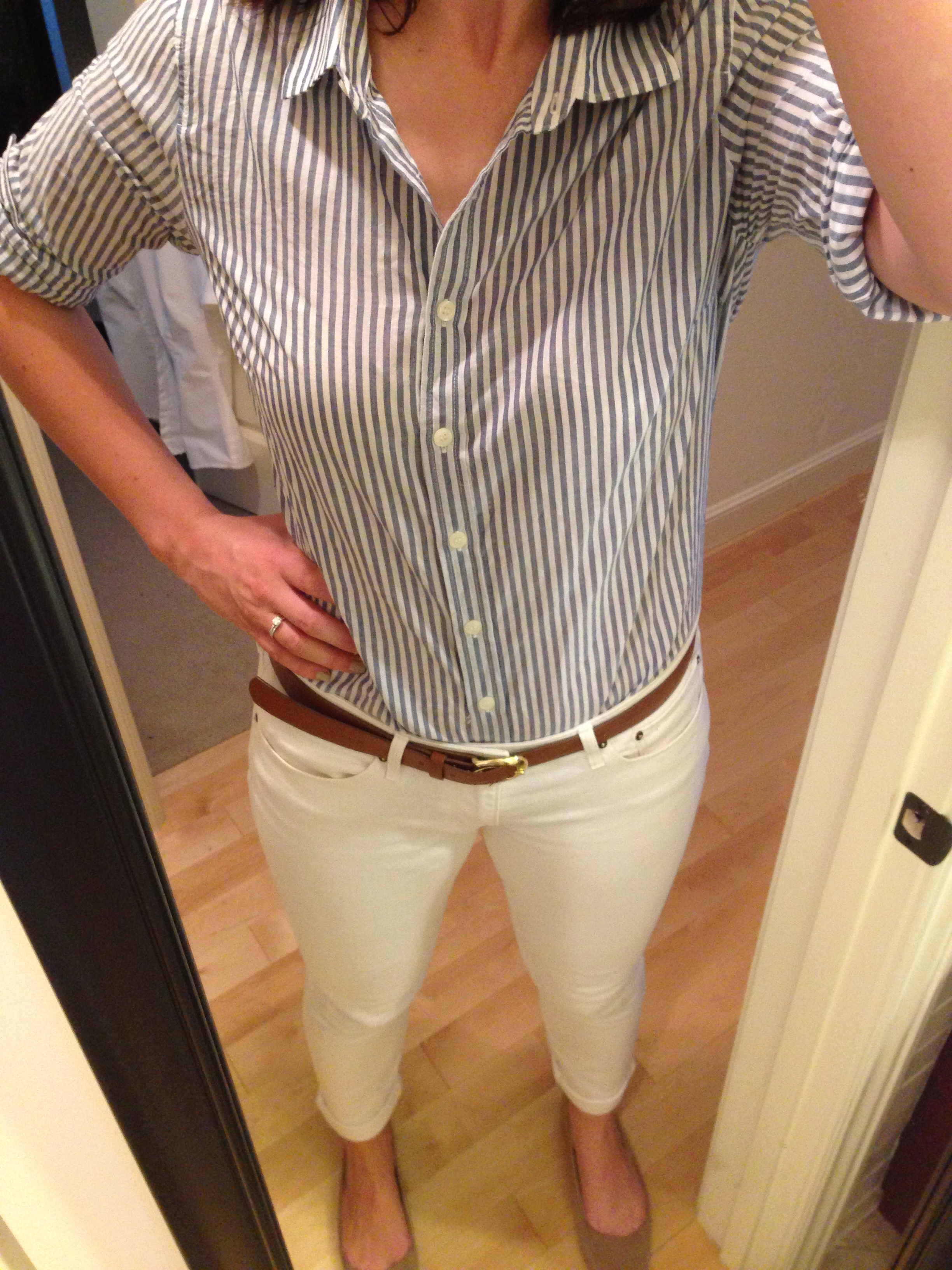 Necklace: China; Blazer: Loft (this season); Tank: Banana Republic Factory; Belt: J. Crew Factory; Jeans: Mango; Shoes: Lands End Canvas