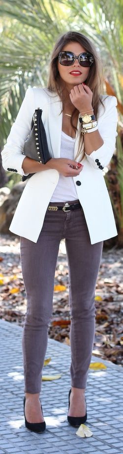 Blazer: Express; Tee: Gap; Necklace: Forever 21; Jeans: Levi’s (this season); Shoes: Lands End Canvas