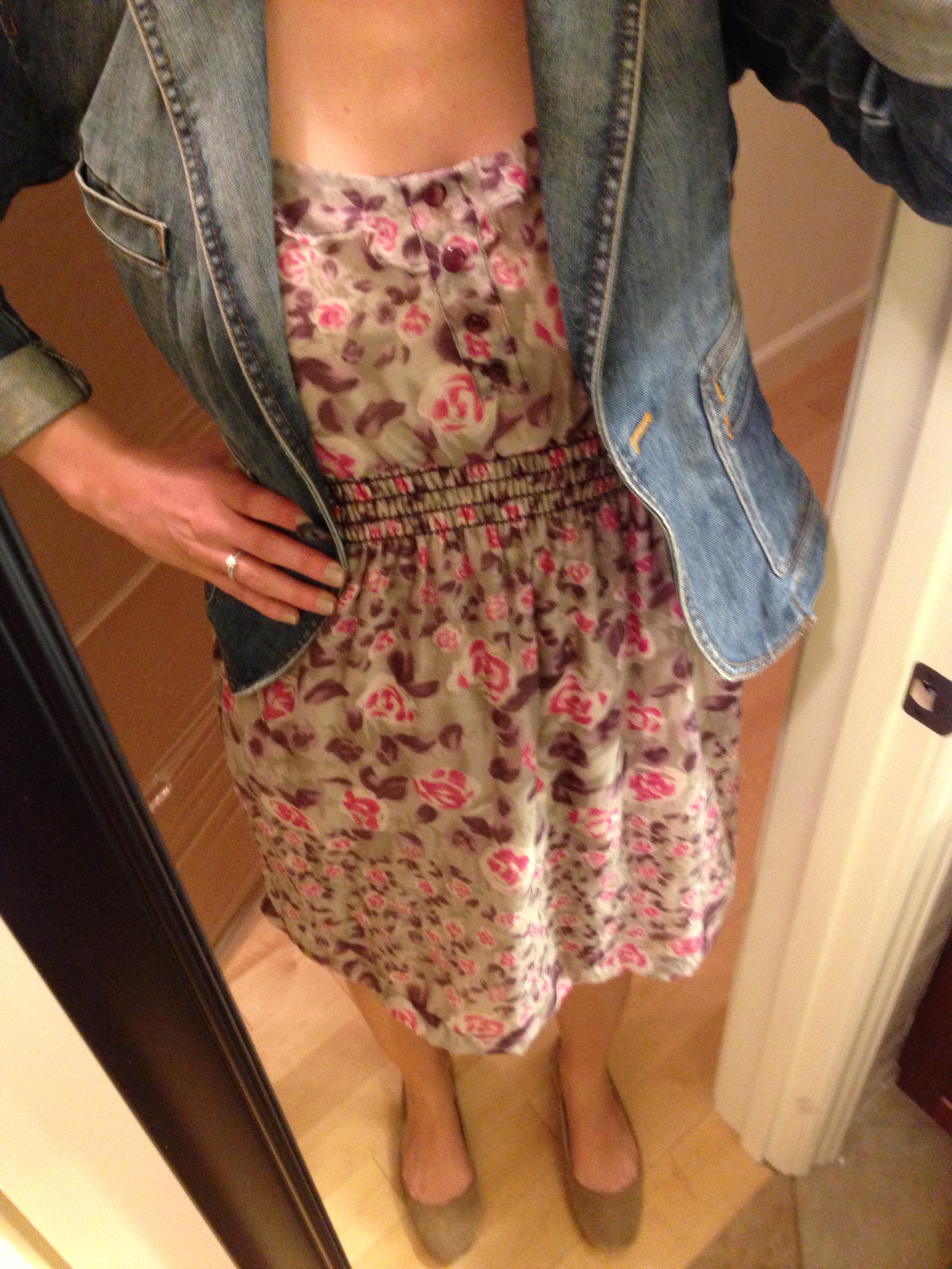 I don’t know why, but I don’t like jean jackets, in the traditional sense. I think they look cute on everyone else, but very Farmer in the Dell on me. Which is why I love pairing this jean blazer with anything I can. It’s actually 10+ years old. And an extra small. Since it still fits that means I haven’t gained a pound since my early 20’s, right?