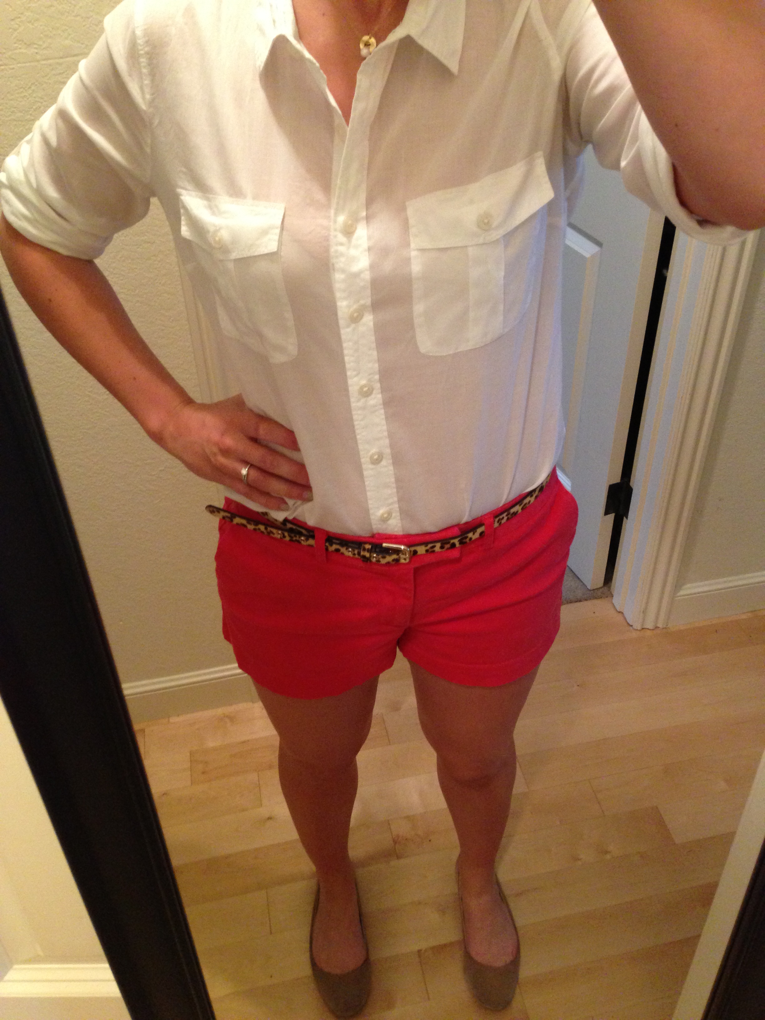 Shirt: J.Crew Factory (this season); Necklace: Etsy (this season); Belt: J.Crew Factory; Shorts: Gap Factory; Shoes: Lands End Canvas