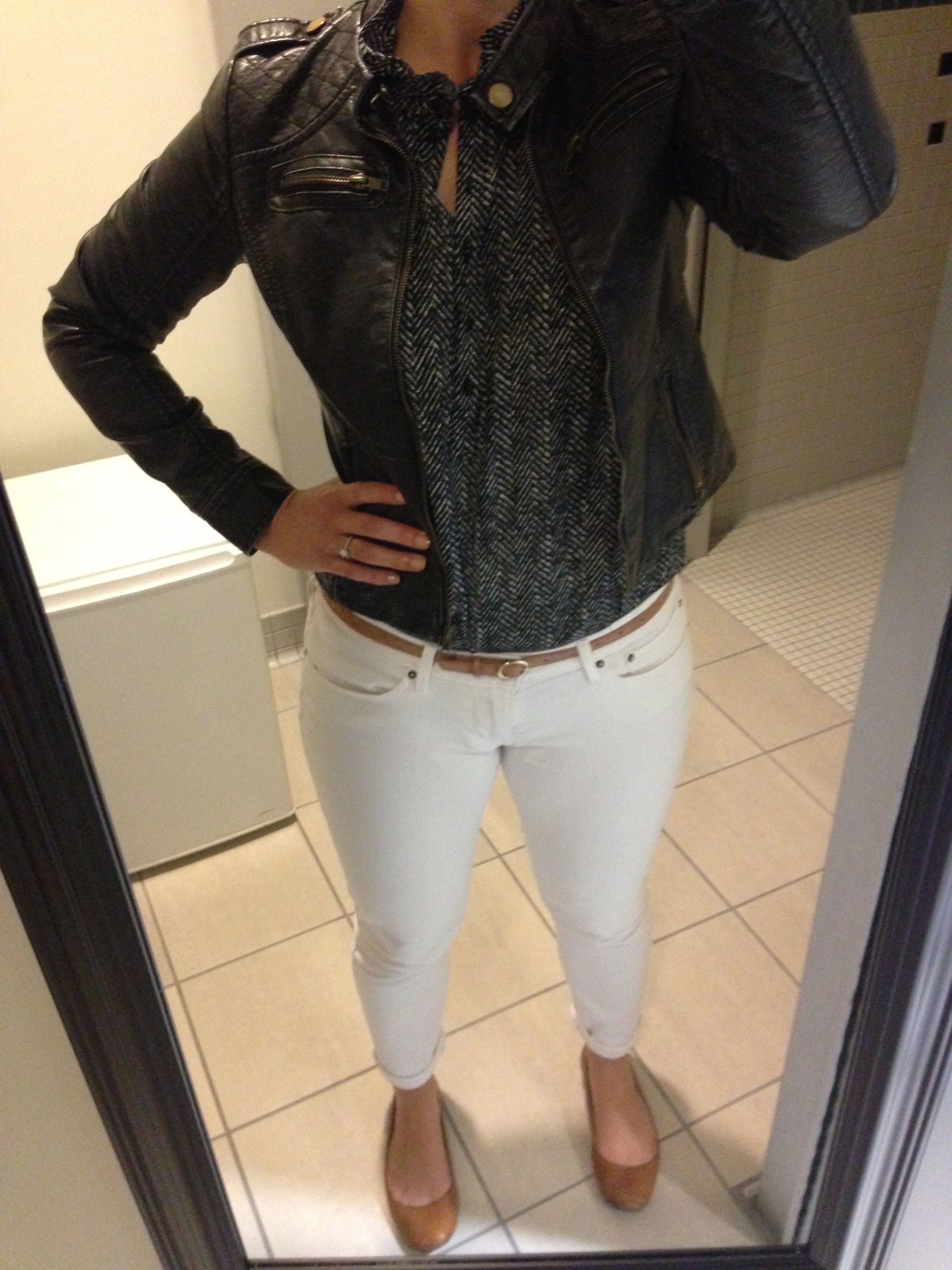 Jacket: Target; Shirt: J. Crew Factory (this season); Belt: J. Crew Factory (this season); Jeans: Levi’s; Shoes: Lands End Canvas