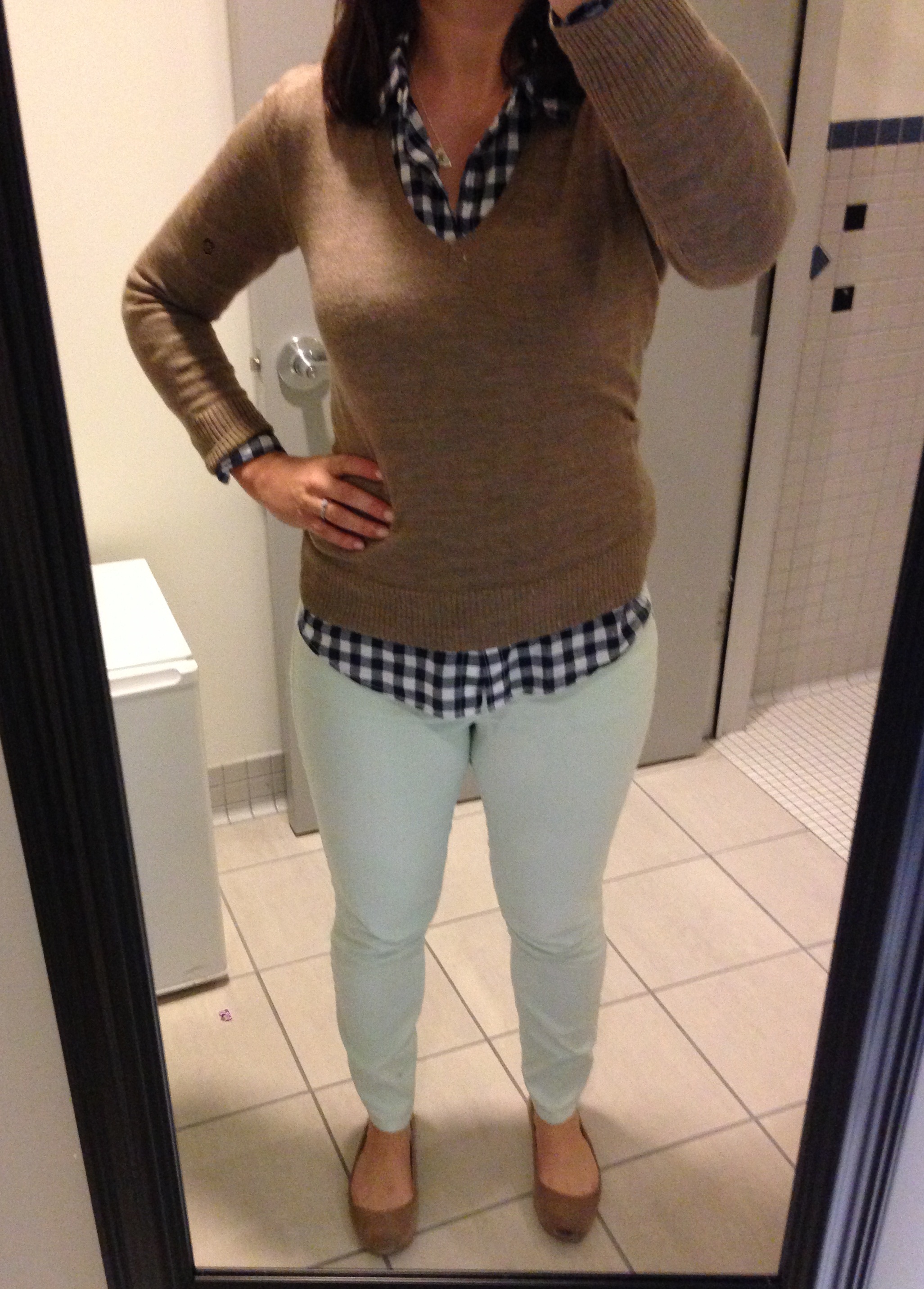 Vest: J. Crew Factory; Sweater: Lands End Canvas; Shoes: Lands End Canvas; Leggings: Target; Jeans: Mango