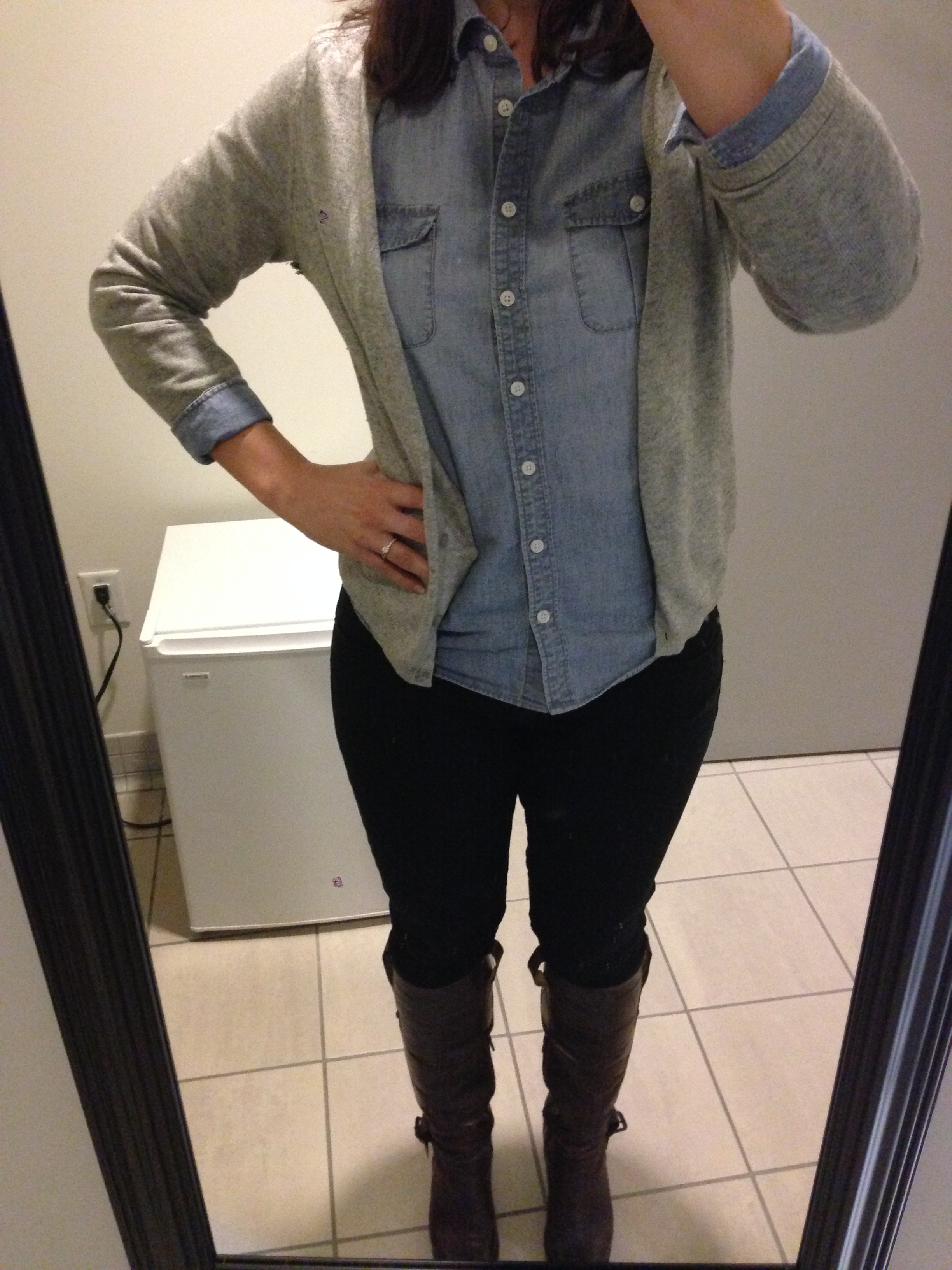 3. Jeans: Levi’s; Shirt: J. Crew Factory; Cardigan: Ann Taylor; Boots: Aldo