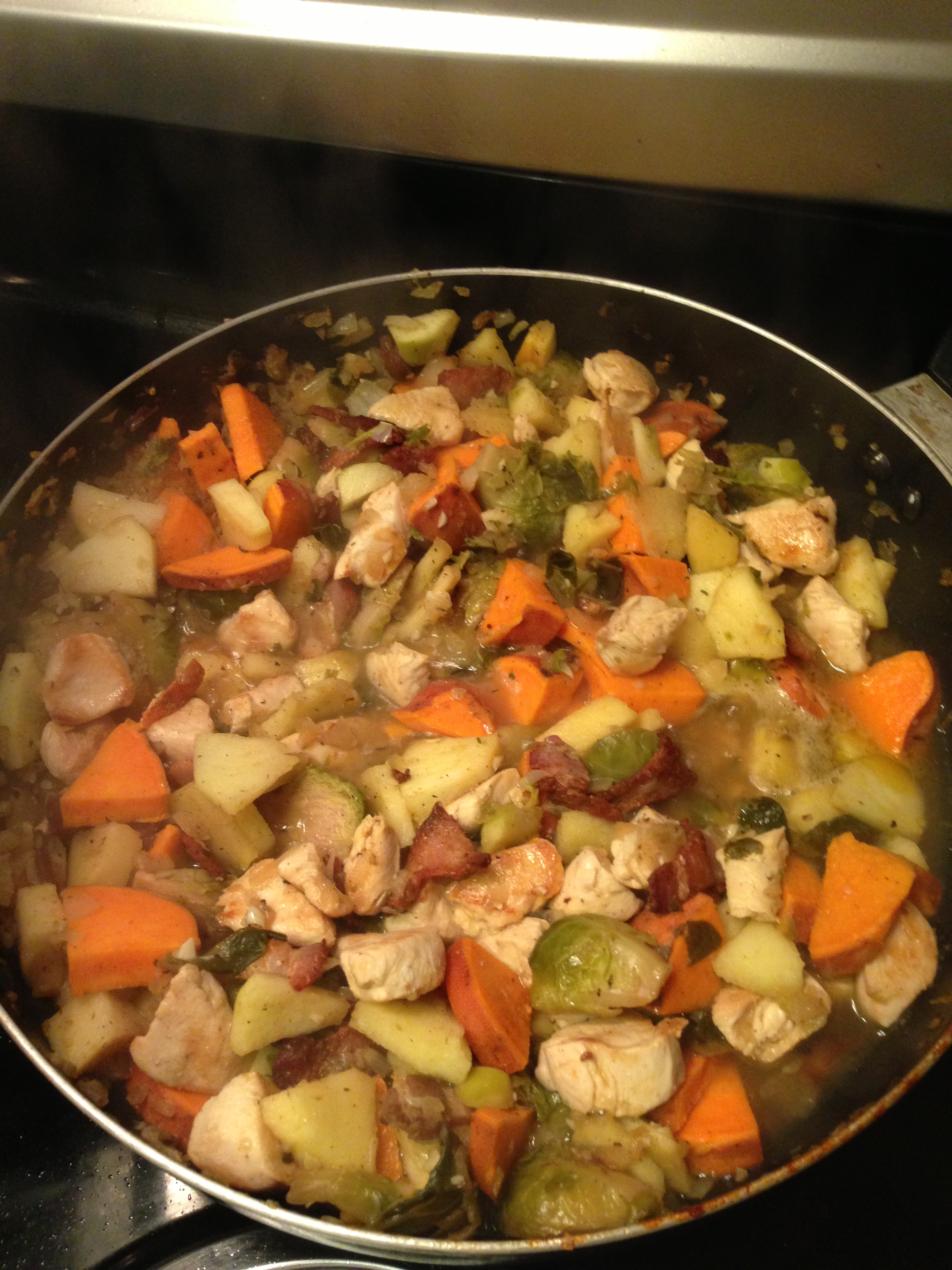 I’m not really sure what the difference is between a skillet and a stir fry, but I seem to like them both. This recipe has become my new favorite and I’ve actually made it a couple of times now. I’m not a huge fan of the prep work, but I am a fan of the taste! Essentially you’re cooking some chicken, then some bacon, and then frying everything in that bacon and grease. What’s not to love? Plus, I have a soft spot for sweets, so sweet potatoes and apples are right up my alley.
