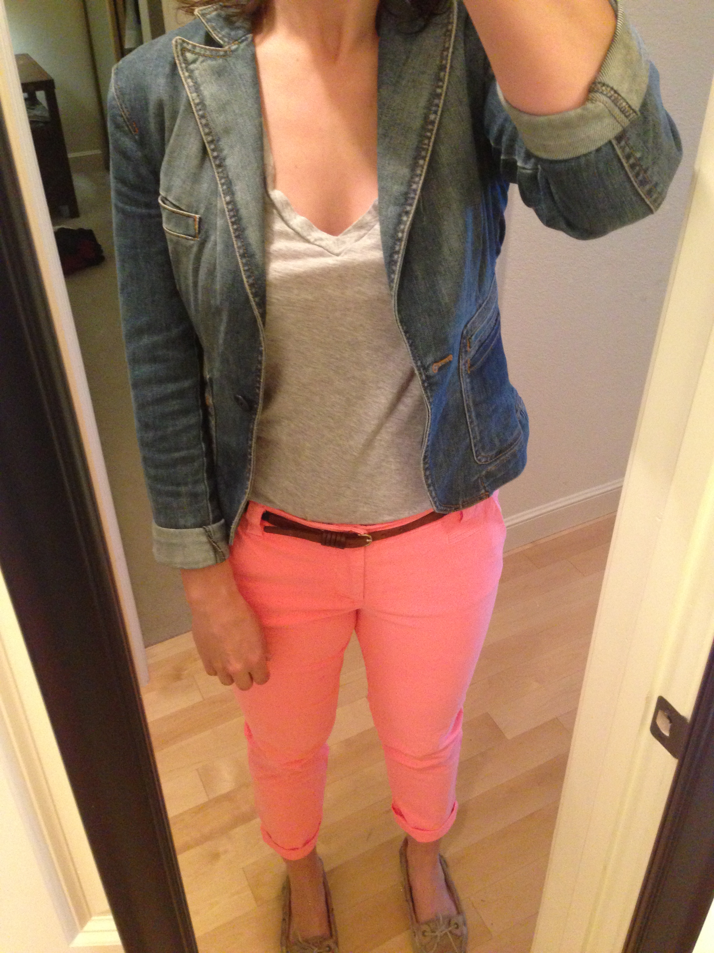 Pants: Gap Factory (this season); Shirt: Gap (this season); Jacket: The Limited; Belt: Banana Republic Factory; Shoes: Sperry Topsider